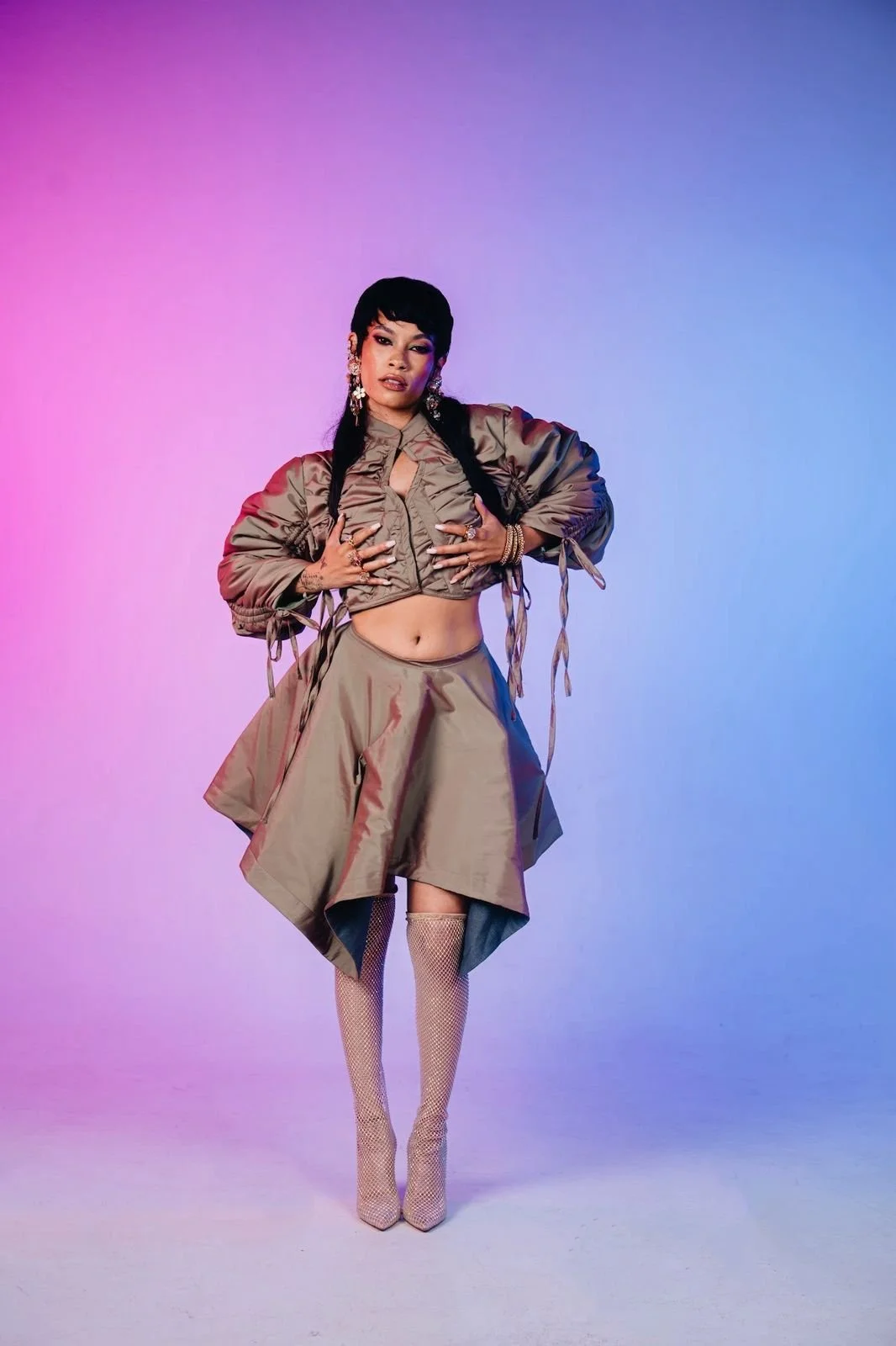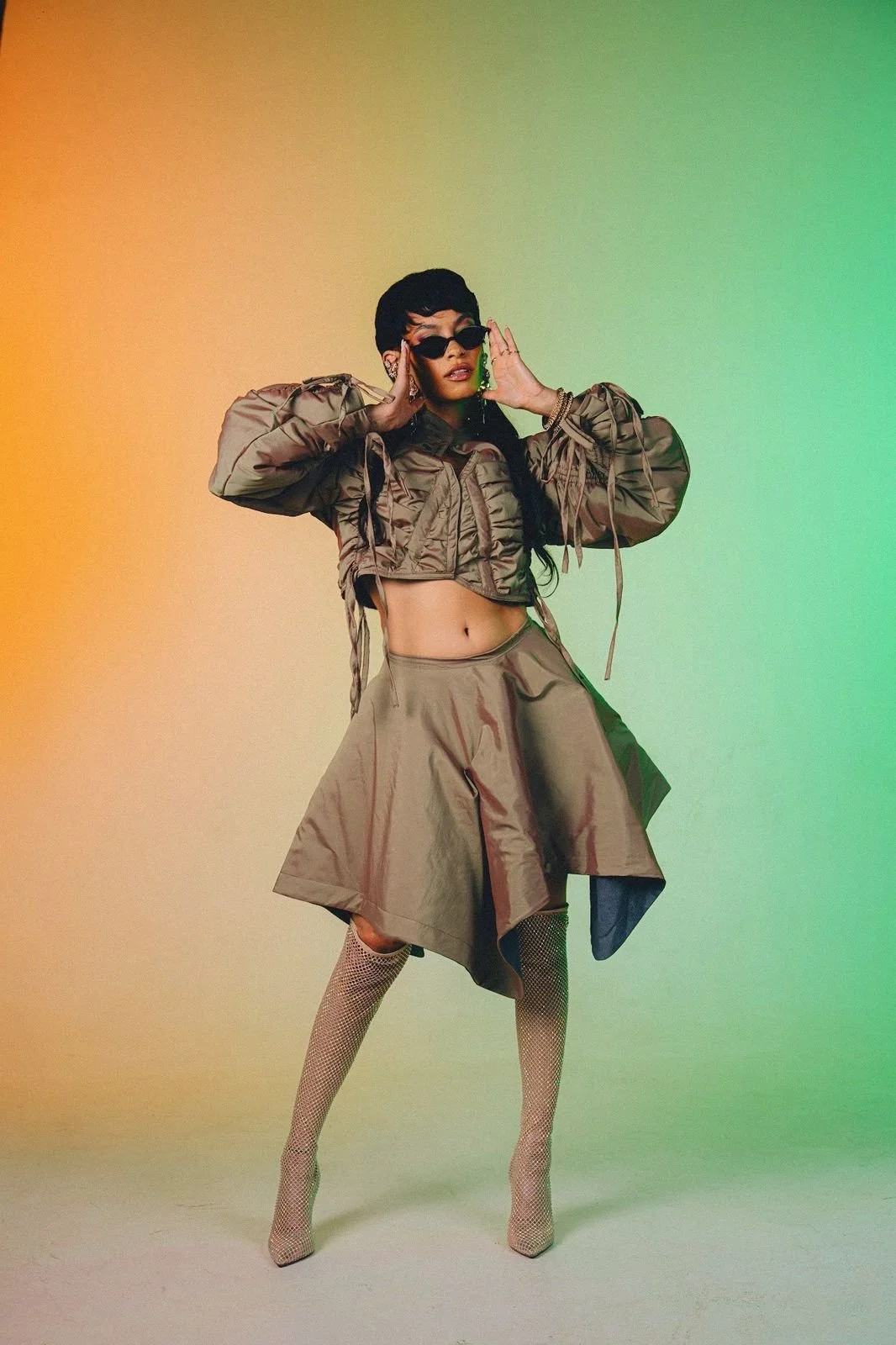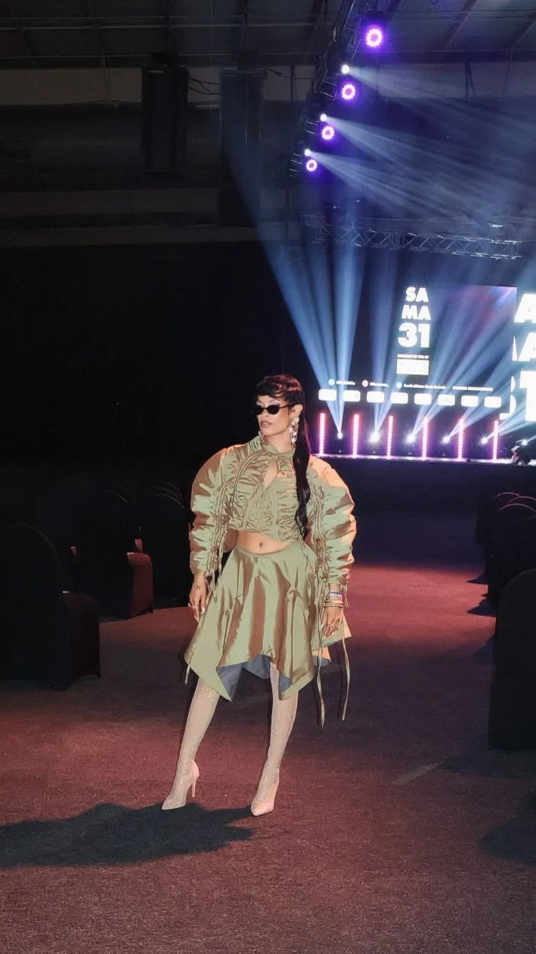 Mikhalé Jones arrived in a custom Sinchui green two-piece that felt rooted and deliberate. Channeling an orchard-inspired palette, the look balanced structure and softness - understated yet commanding, much like her approach to music. It was a reminder that restraint can still make a bold statement.